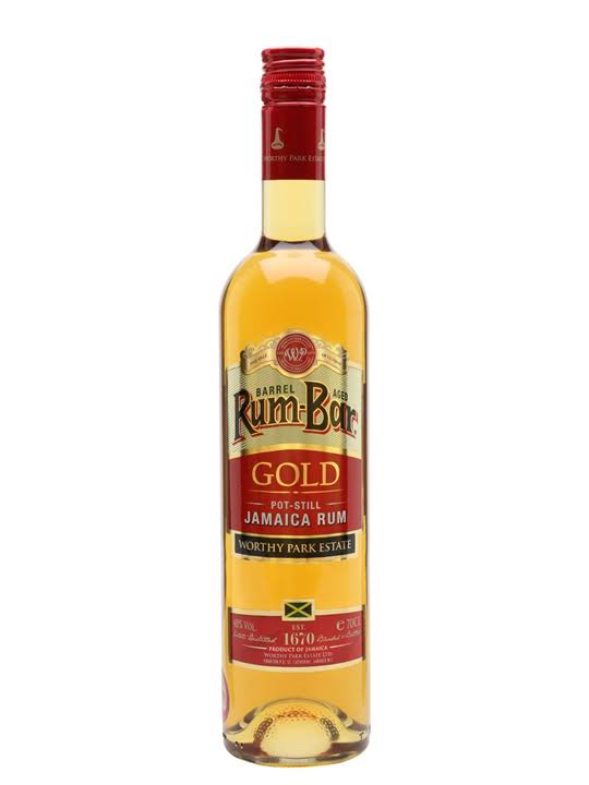Rum-Bar Gold is a blend of rums all distilled and aged at Worthy Park Estate. All of the rums in this blend are aged for a minimum of 4 years in American white oak barrels that previously held bourbon. Rum-Bar Gold is distilled in a 100% copper, double retort pot still manufactured in Scotland by Forsyths. Tropical aging at the estate contributes to the rum's maturity and full flavor.